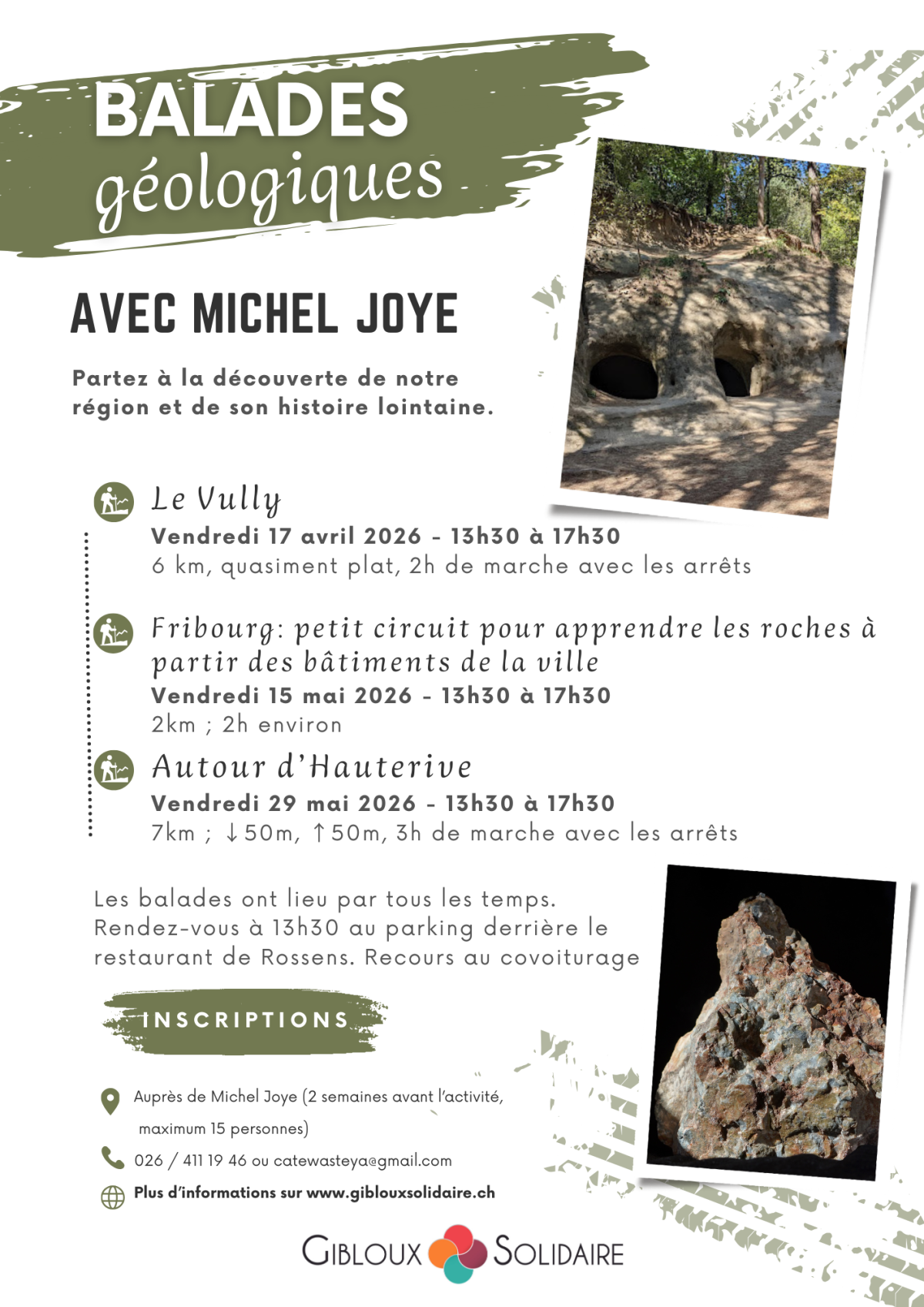 Michel Joye : 026 411 19 46 ou catewasteya@gmail.com (min. 1 semaine avant) – Maximum 12 participant.e.sEn cas de fortes pluies annoncées pour l’une de ces journées, il y aura report de l’excursion au vendredi 17 octobre 2025.