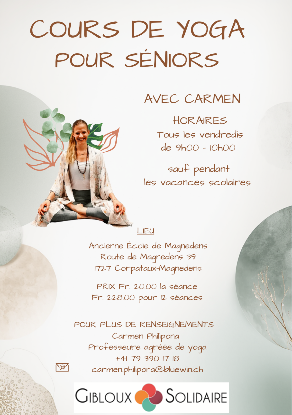 En collaboration avec Mme Carmen Philipona, professeur agréée de yoga, organise des séances de yoga pour séniors